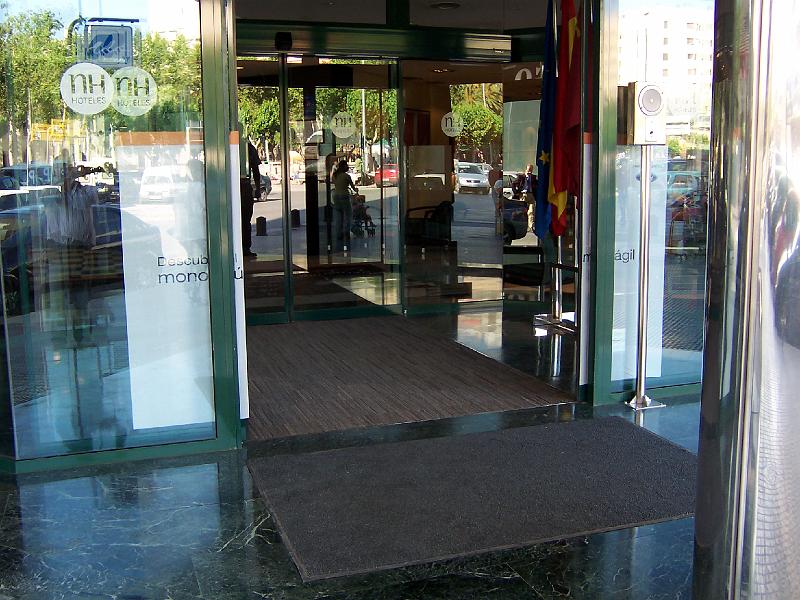 Felpudos de neumaticos de avión de alta resistencia en entrada de Hotel (Hotel NH Amistad, Murcia)