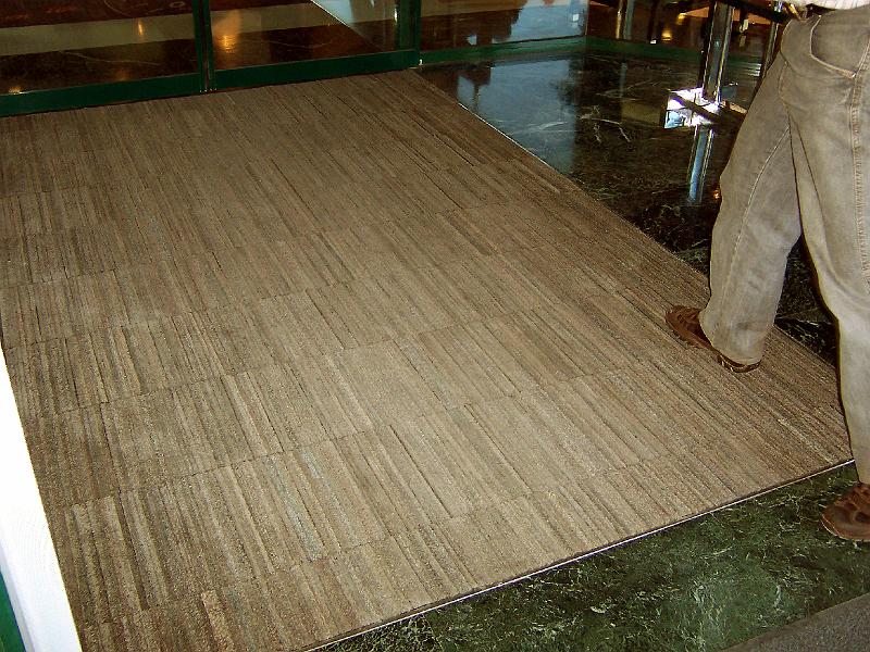 Felpudos de neumaticos de avión de alta resistencia en entrada de Hotel (Hotel NH Amistad, Murcia)