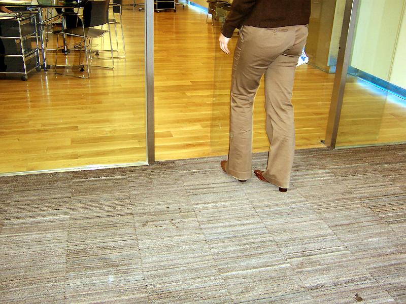 Felpudos de neumaticos de avión de alta resistencia en entrada de Oficinas de agencias de viajes (Viajes Diana S.A., Murcia)