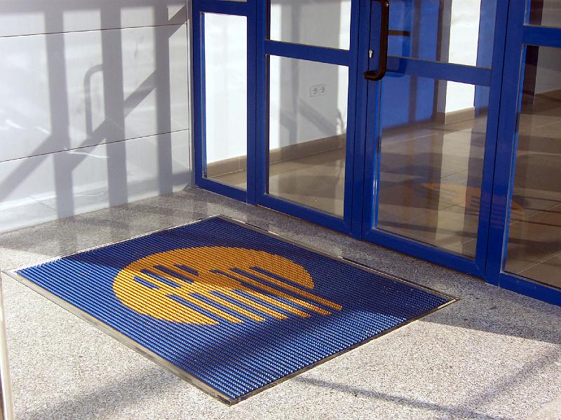 Felpudo ABIMAT modelo ABI Brush personalizado, fabricado en cepillos de nylon. (Sede transportes Azkar Murcia)