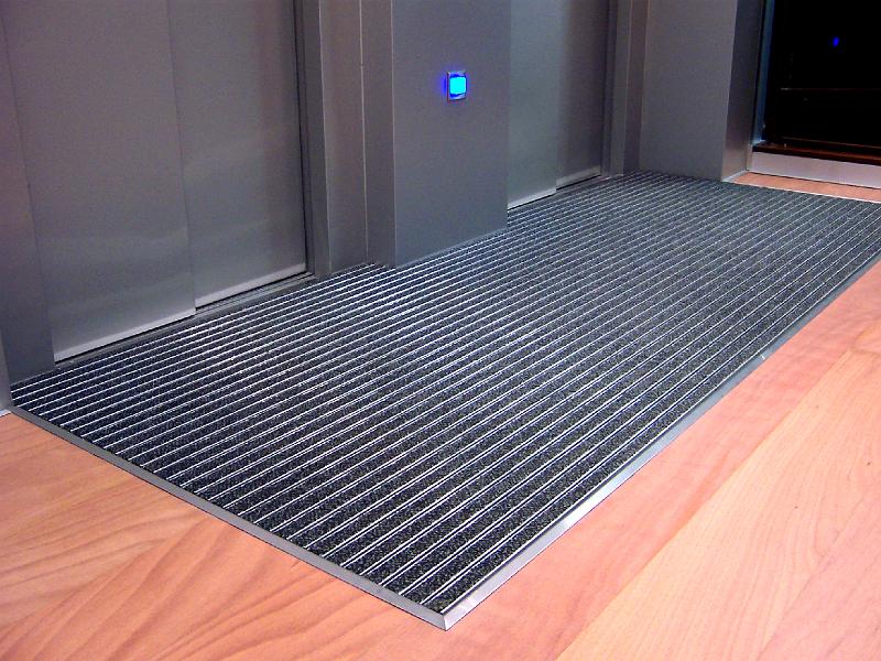 Felpudo ABIMAT modelo ABI Aluflexmat 22 mm, acabado textil en entidades bancarias (Sede central de Cajamar, Almería)