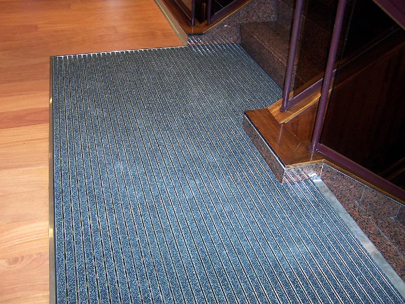Felpudo ABIMAT modelo ABI Aluflexmat 22 mm, acabado textil en entidades bancarias (Sede central de Cajamar, Almería)