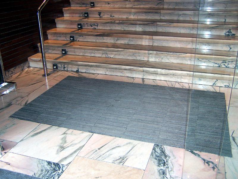 Felpudos de alta resistencia fabricados con neumaticos de avión reciclados en restaurante Hotel Rincón de PEPE (Murcia)