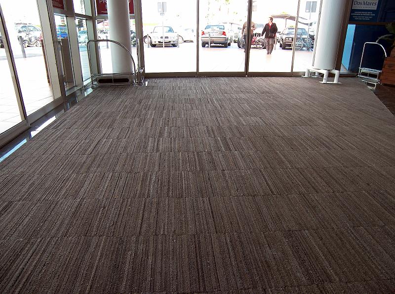 Felpudos de alta resistencia fabricados con neumaticos de avión reciclados en Centro Comercial Dos Mares (San Javier, Murcia)
