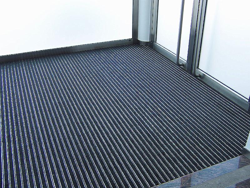 Felpudo metalico ABIMAT modelo ABI Aluflexmat 22 mm acabado textil, en oficinas (Puertas Padilla S.A. , El Albujón, Murcia)