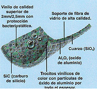 de alta resistencia, antideslizante compuesto de una mezcla de vinilos y de