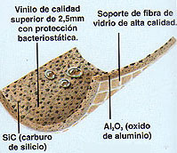 vinilo y gránulos abrasivos constituidos de: Oxido de aluminio en la