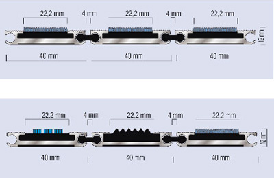 aluminio con tres filas de cepillos, líneas de 2 cm de ancho de moqueta de